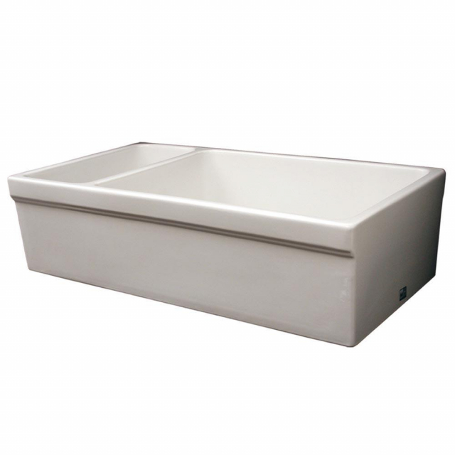 Whitehaus, WHQDB542-WHITE, Farmhaus Fireclay Quatro Alcove Large Reversible Sink and Small Bowl with Decorative 2-1/2" Lip on Both Sides