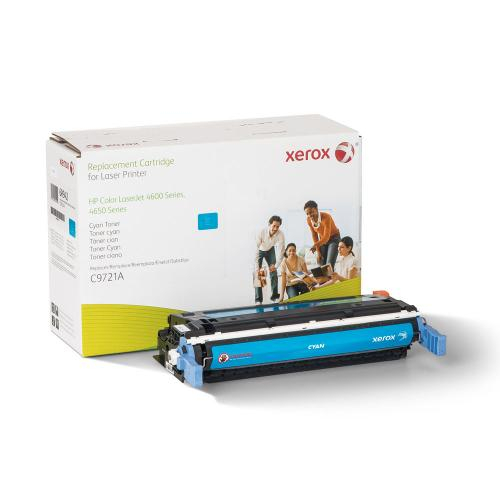 Yields 10,000 pages. This Xerox brand Remanufactured cyan toner cartridge is compatible with the HP 4600 and yields up to 10,000 pages. Replaces OEM part number C9721A.