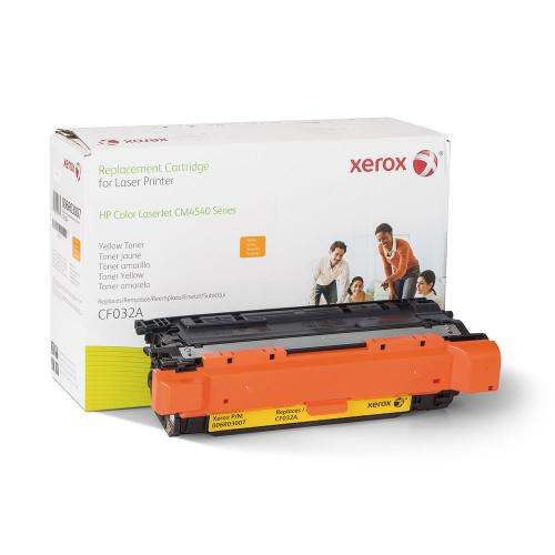 Yields 12,500 pages. This Xerox brand Remanufactured yellow toner cartridge is compatible with the HP CM4540 and yields up to 12,500 pages. Replaces OEM part number CF032A.