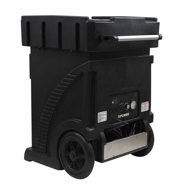Moving It is made easy with built-in handle and wheels. Has 25ft power cord and cord management is made easy with a built-in cord compartment. Lightweight for its size, the aluminum kick plate makes it effortless to tilt for easy mobility. It has all the attributes of traditional large volume air scrubber for tough job sites, but with the technology advancements and ultra-quiet features to be used as an all-day HEPA filtered air filtration system.