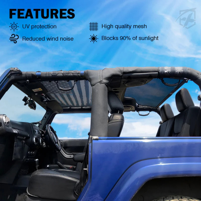 Jeep mesh sun shade can effectively block most of the sun and ultraviolet rays, allowing you to fully enjoy that amazing open-air driving experience!